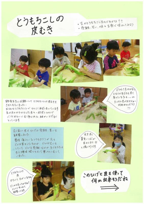 【さんさんまりんこども園】5歳児クラス活動☆とうもろこしの皮むき