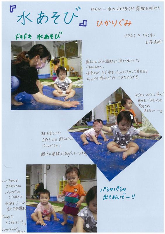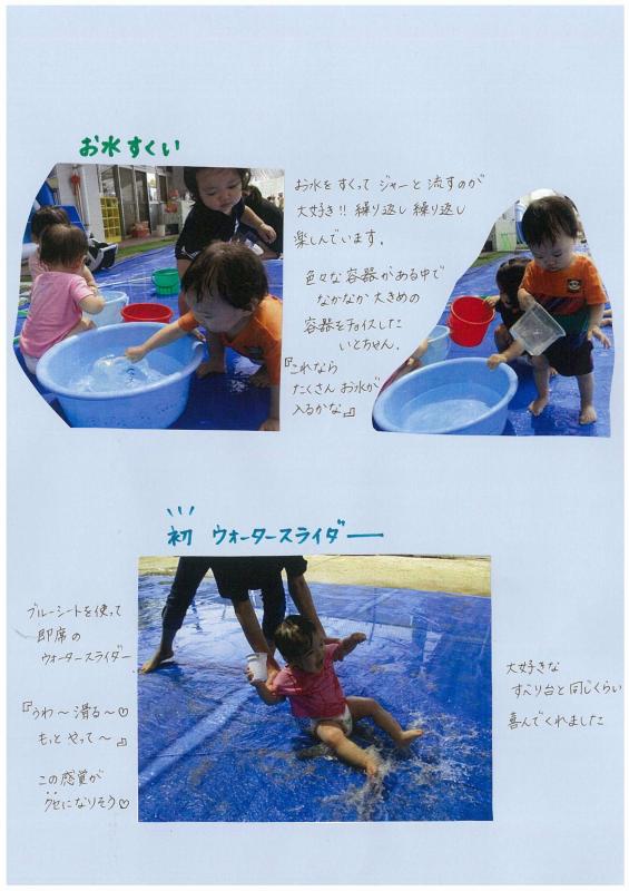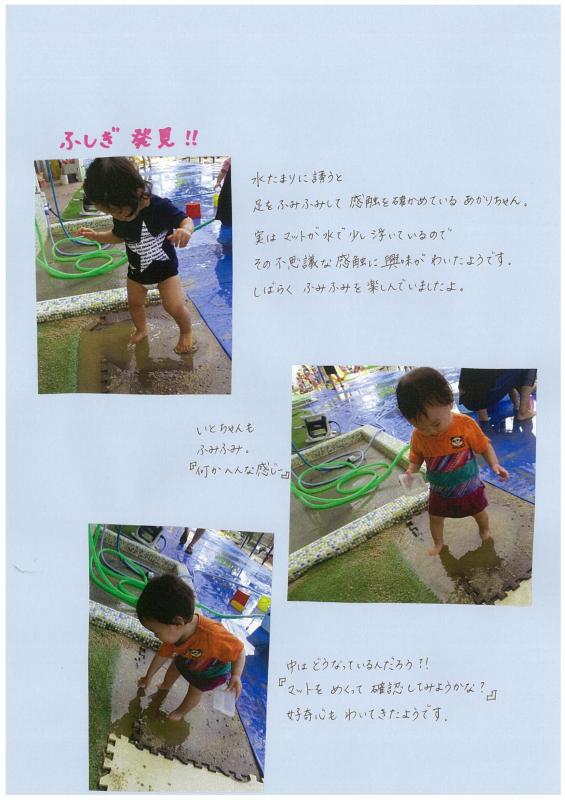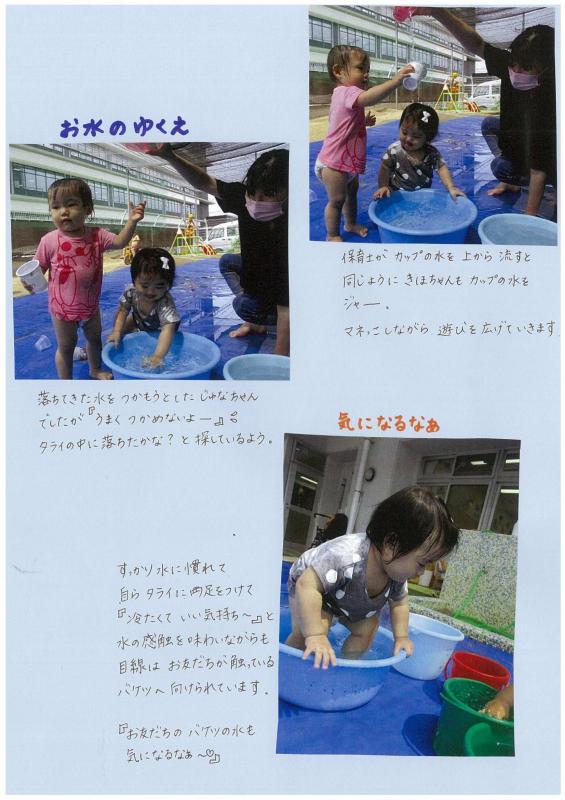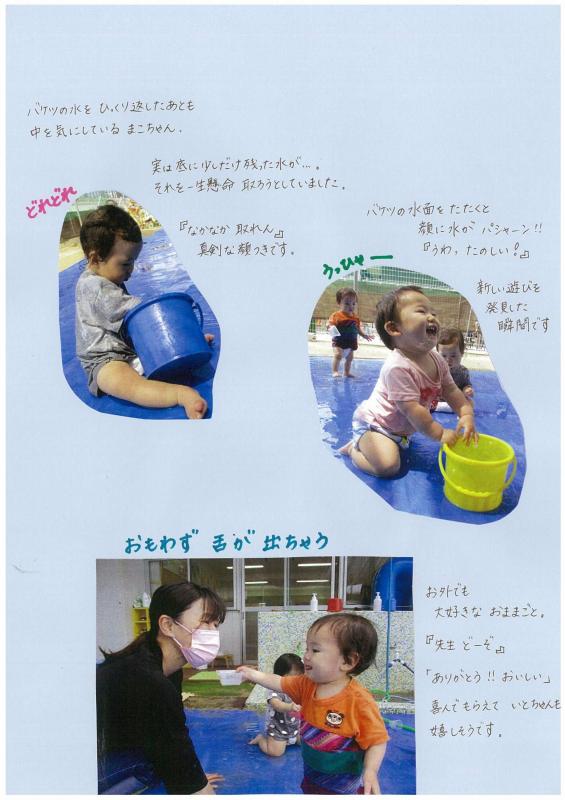 最初は水の触感に涙がでていましたが、保育士が手で水をパシャパシャして