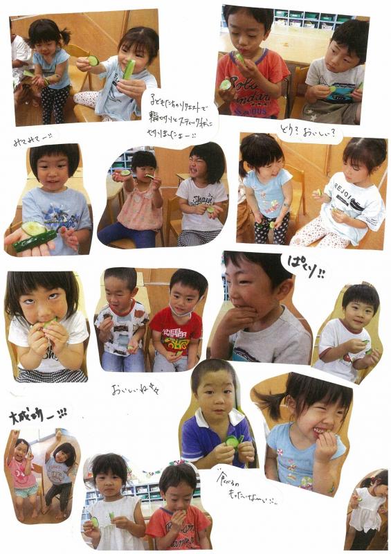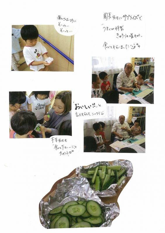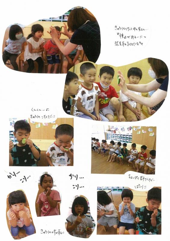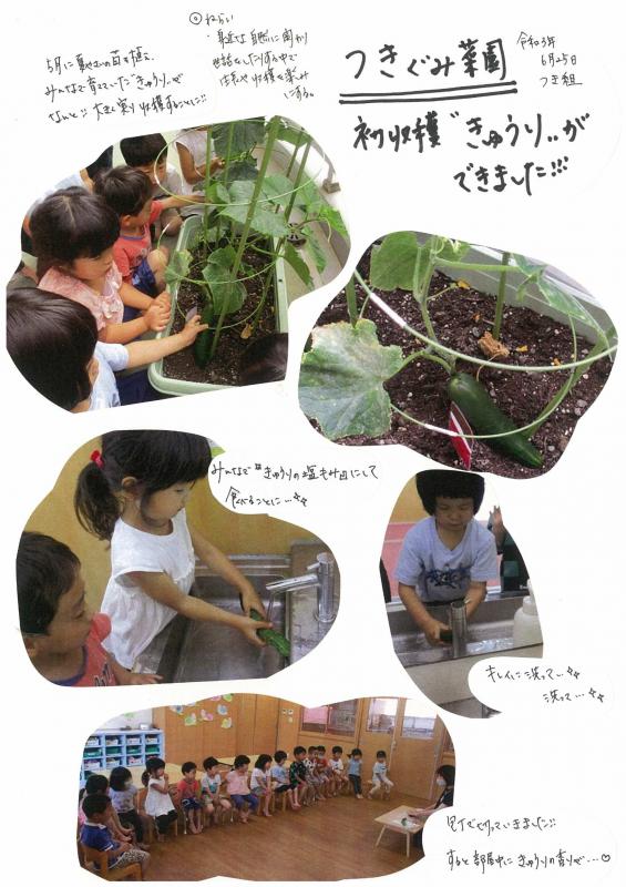 【さんさんまりんこども園】4歳児クラス活動☆つきぐみ菜園 初収穫きゅうりができました!!!