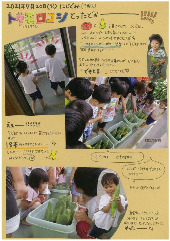 「トウモロコシがんばれー!!!」と子どもたちが毎日声をかけると・・・