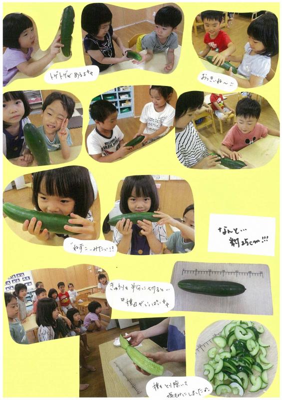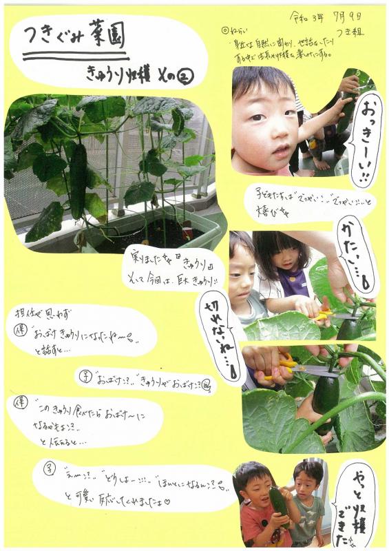 【さんさんまりんこども園】4歳児クラス活動☆つきぐみ菜園 きゅうり収穫その②