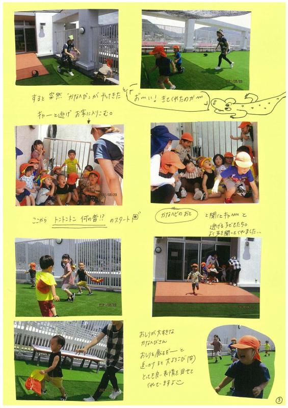 【さんさんまりんこども園】2歳児クラス活動☆まてまてあそび かなへび?!から逃げろ!!