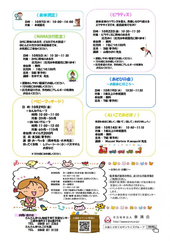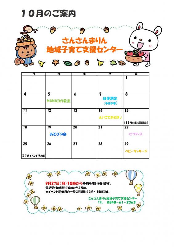 【さんさんまりん地域子育て支援センター】 10月のご案内