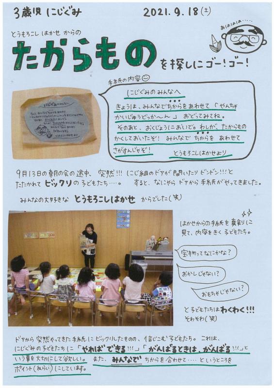 【さんさんまりんこども園】3歳児クラス活動☆とうもろこしはかせからのたからものを探しにゴー!ゴー!