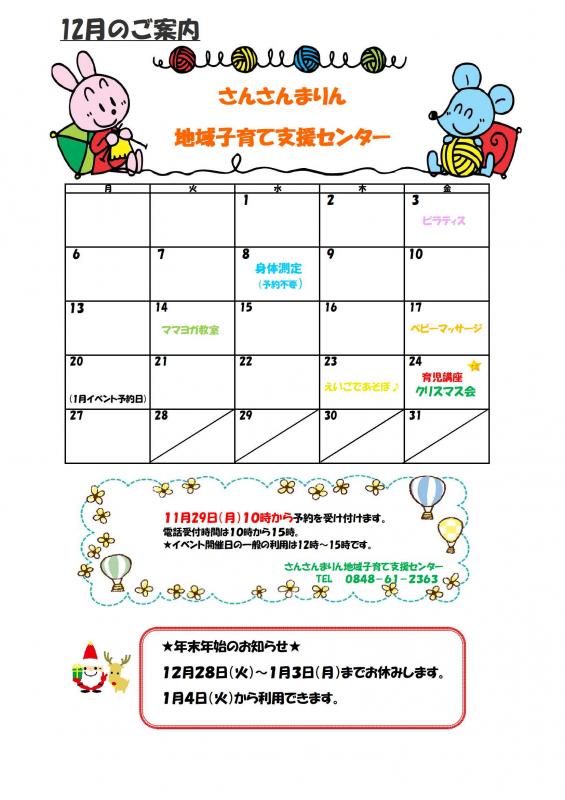 【さんさんまりん地域子育て支援センター】 2022年 1月のご案内