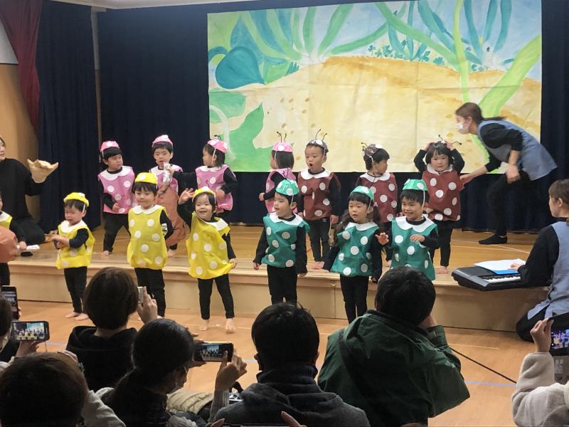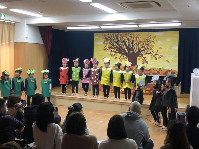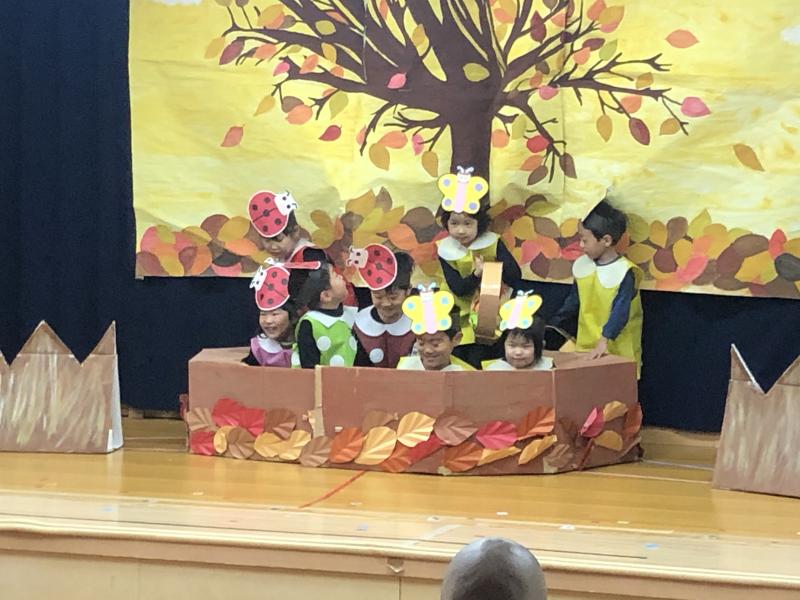 4歳は歌や合奏のほか虫さんたちの冬の準備を劇にしました。