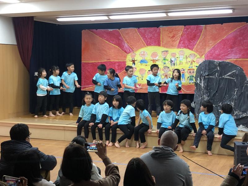 5歳は友だちの大切さをテーマにした冒険劇と恒例のハンドベルと歌でした。