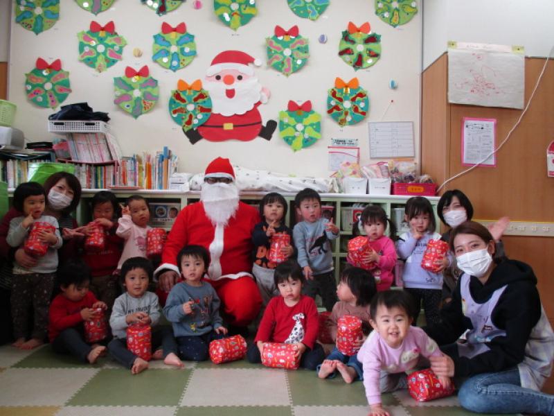 今年もサンタさんがプレゼントをいっぱい持って,まりんこども園に来てくれました。