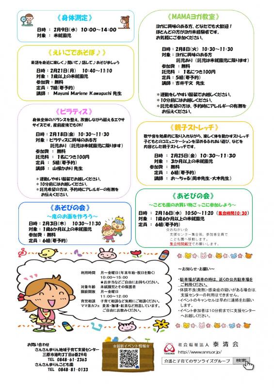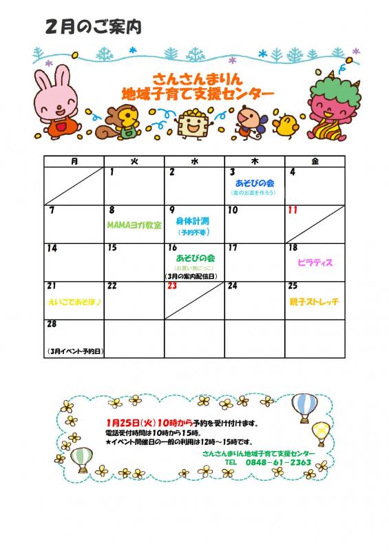 【さんさんまりん地域子育て支援センター】 2月のご案内