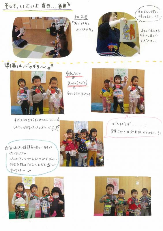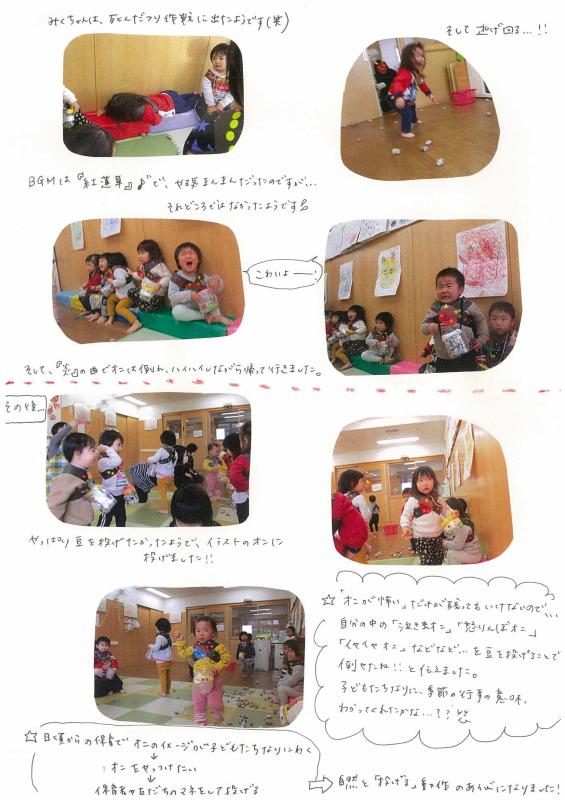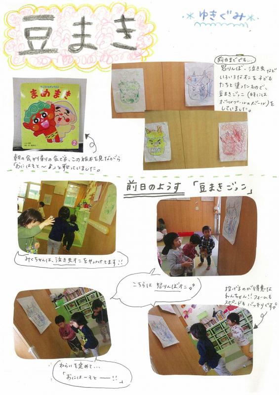 子どもたちと塗ったもので豆まきごっこをしていました。