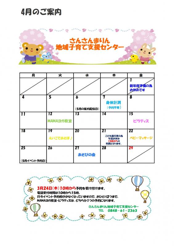 【さんさんまりん地域子育て支援センター】 4月のご案内