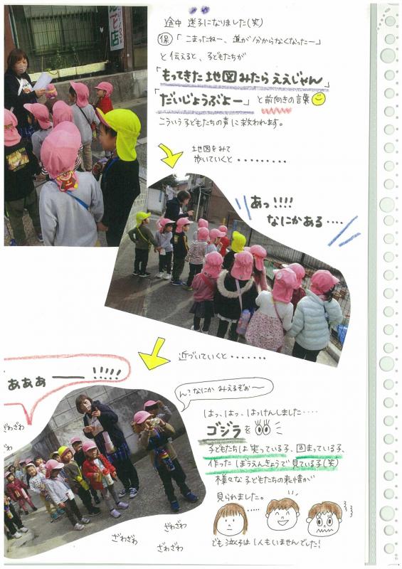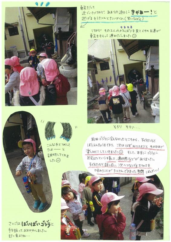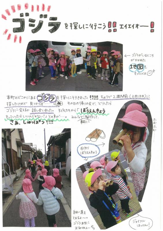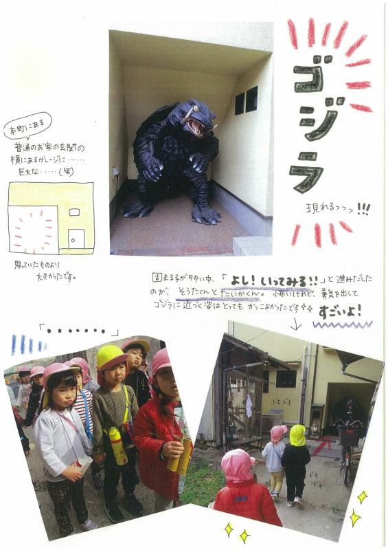 【さんさんまりんこども園】3歳児クラス活動☆ゴジラを探しに行こう‼エイエイオーー!