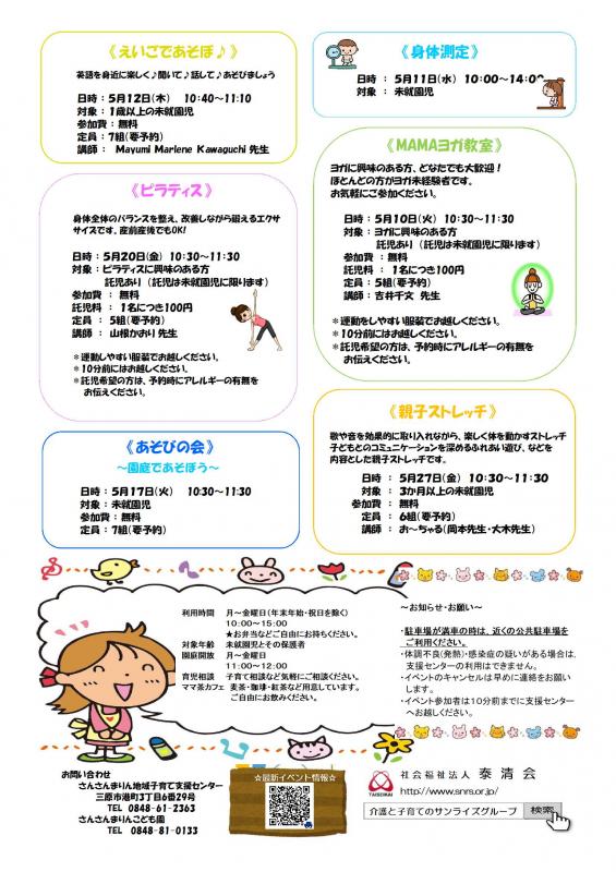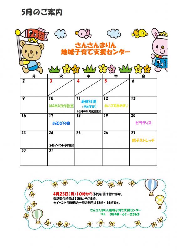 【さんさんまりん地域子育て支援センター】 5月のご案内
