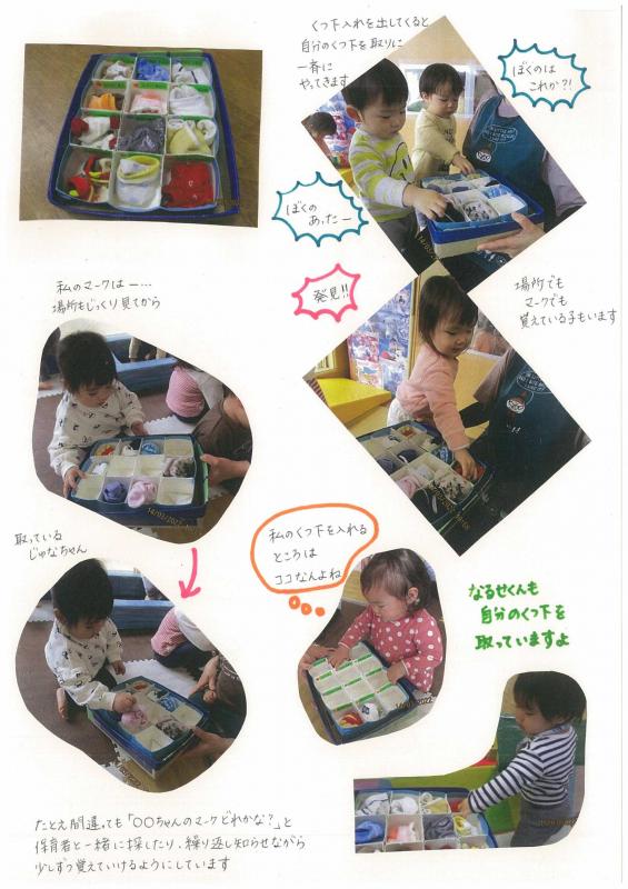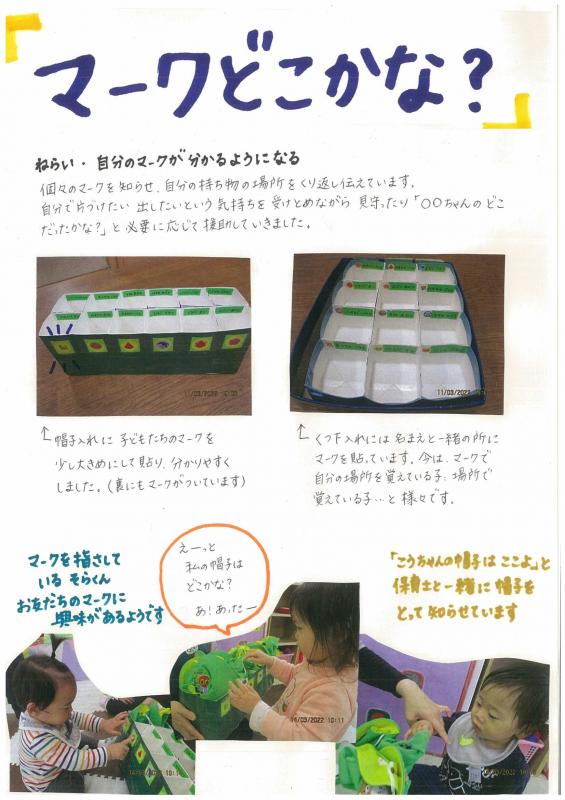 個々のマークを知らせ、自分の持ち物の場所をくり返し伝えています🌺