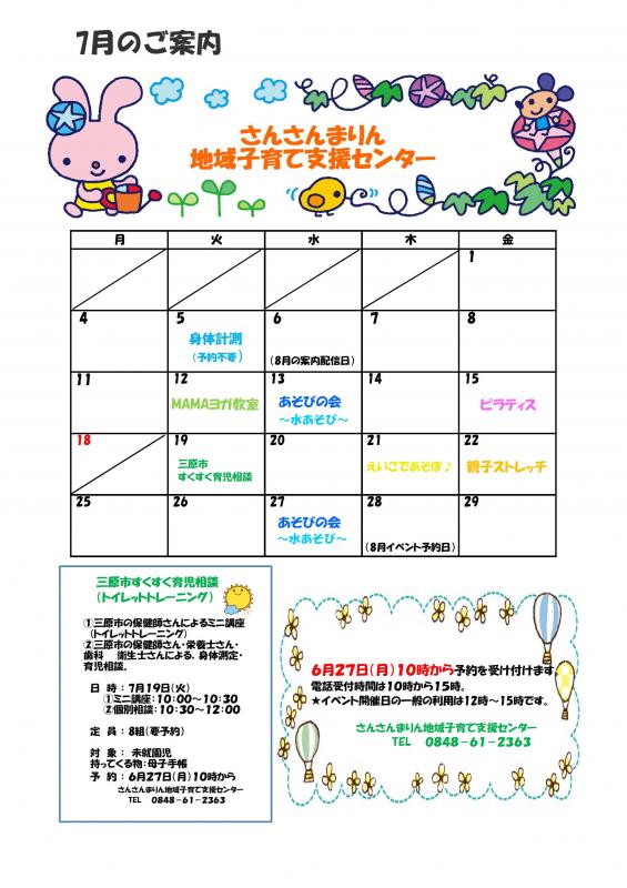 【さんさんまりん地域子育て支援センター】 7月のご案内