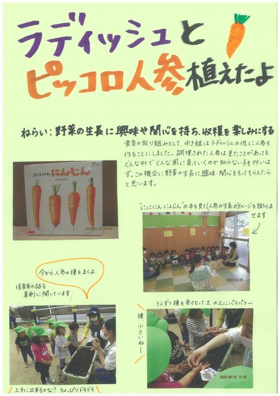 食育の取り組みとして、ゆき組はラディッシュの他に
