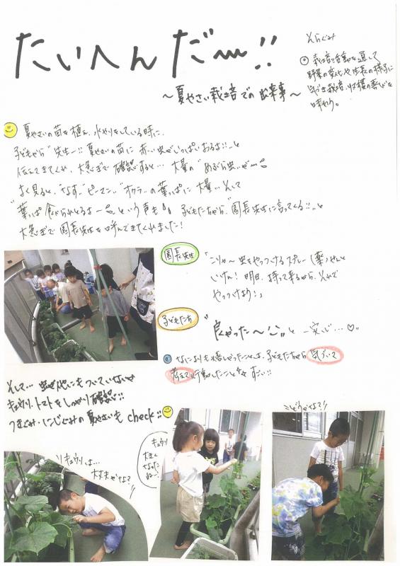 【さんさんまりんこども園】5歳児クラス活動☆たいへんだ~~‼‼‼‼ ~夏やさい栽培での出来事~