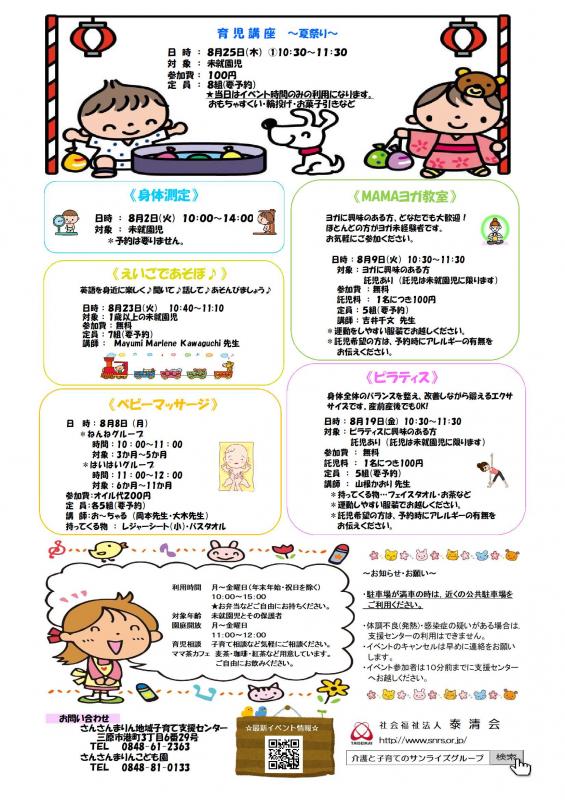 こちらをクリック ⇒ さんさんまりん地域子育て支援センター 8月のご案内【PDF】