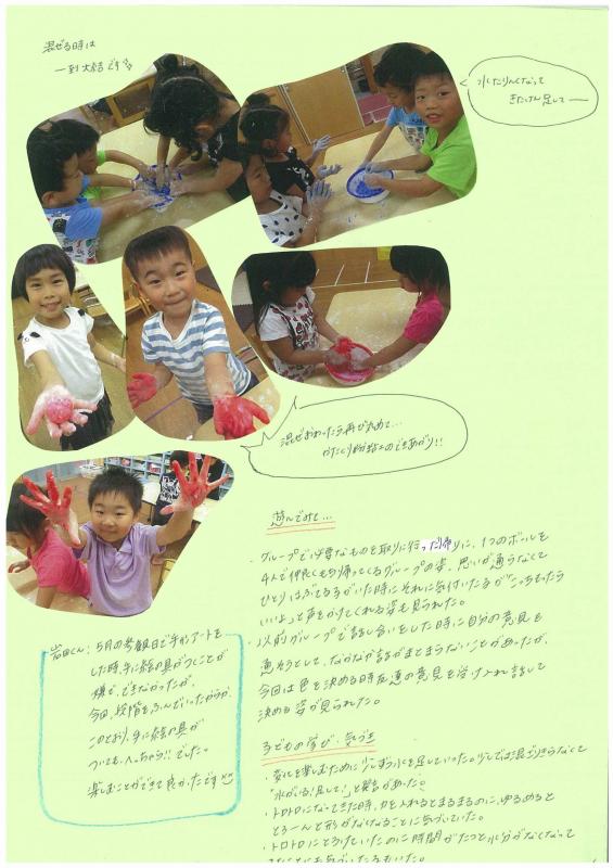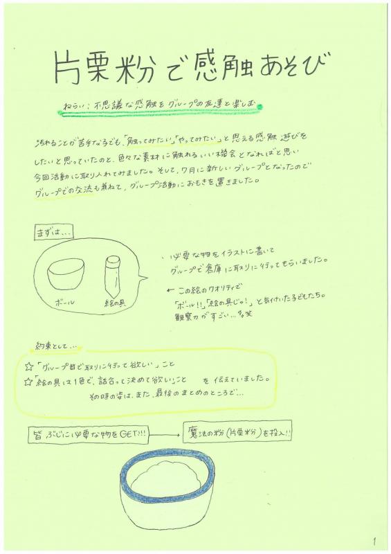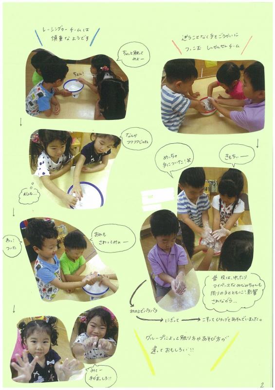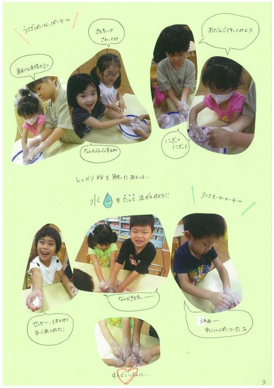 【さんさんまりんこども園】4歳児クラス活動☆片栗粉で感触あそび✋✋✋