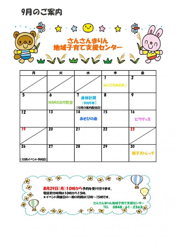 【さんさんまりん地域子育て支援センター】 9月のご案内