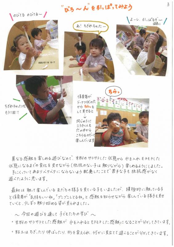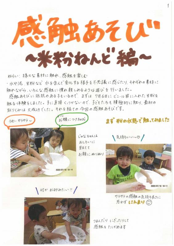 【さんさんまりんこども園】1歳児クラス活動☆感触あそび~米粉ねんど編~
