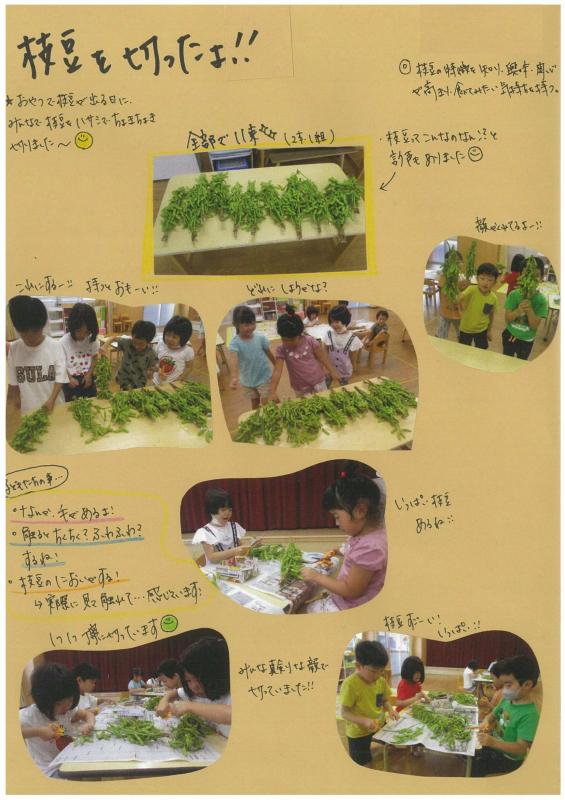 【さんさんまりんこども園】5歳児クラス活動☆枝豆を切ったよ‼‼