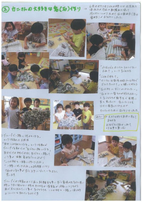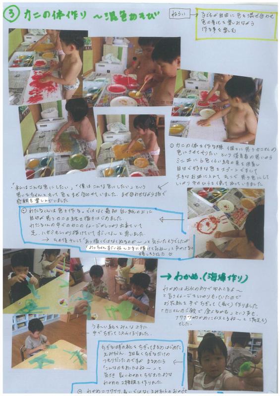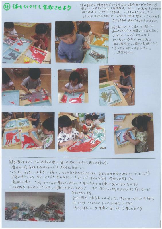 【さんさんまりんこども園】3歳児クラス活動☆カニ🦀🦀作り~壁面製作~~描画~