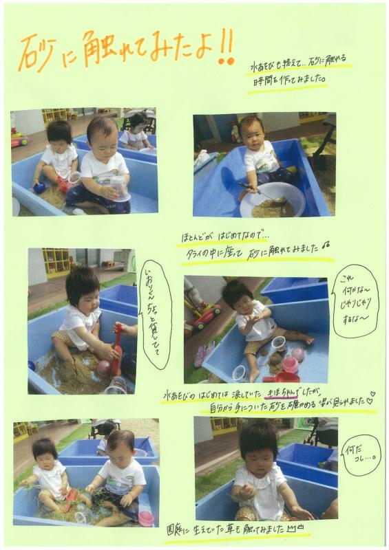 【さんさんまりんこども園】0歳児クラス活動☆砂に触れてみたよ‼‼
