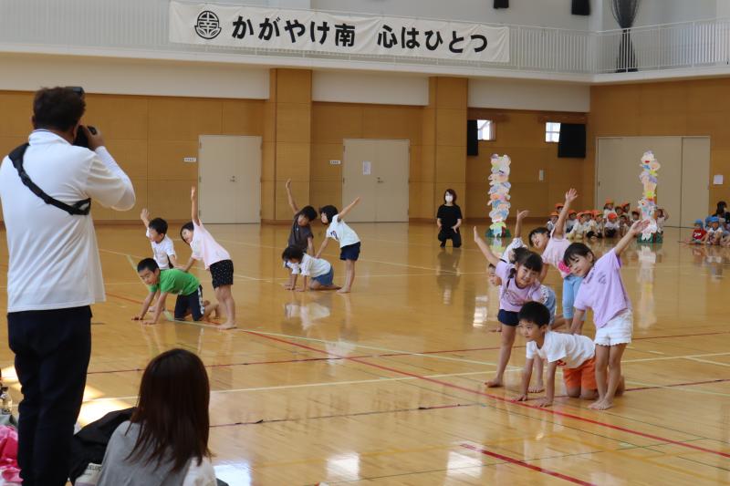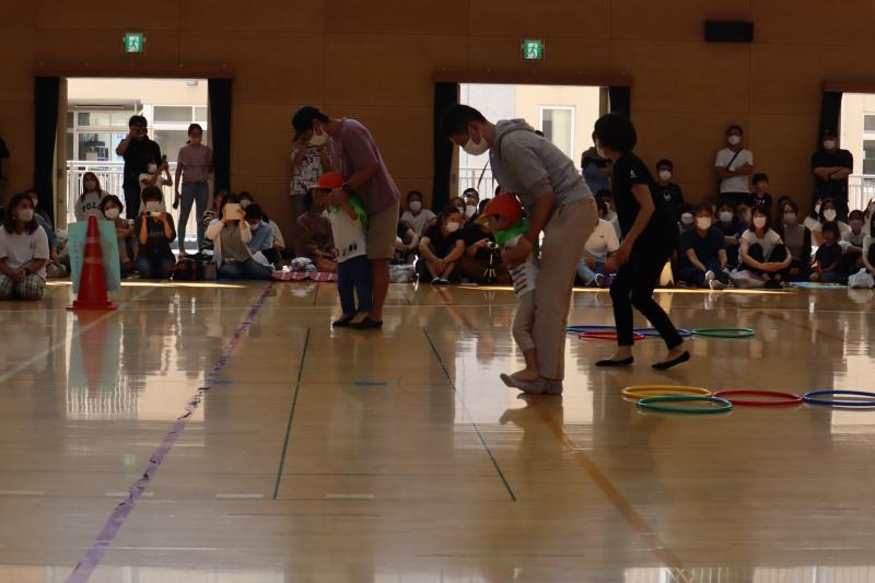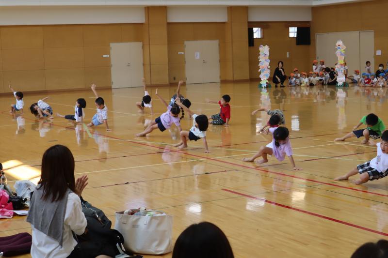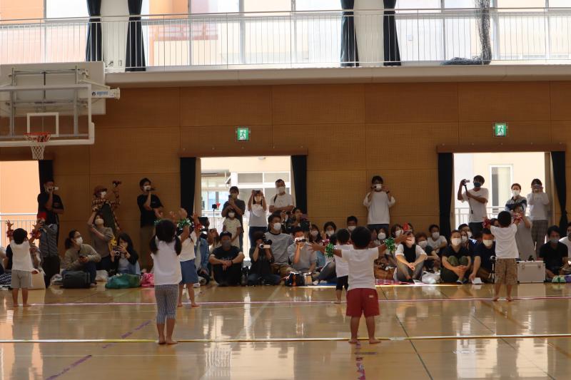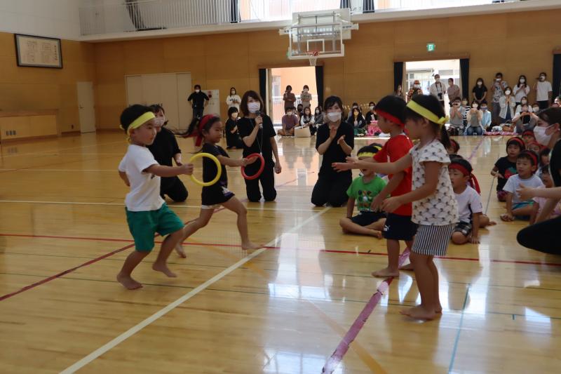 3歳児のリズム「ポポポポポーズ」では,隊形変化もしっかり覚えて可愛い