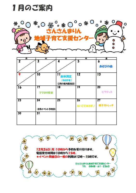 【さんさんまりん地域子育て支援センター】 1月イベントのご予約は12月26日です😊