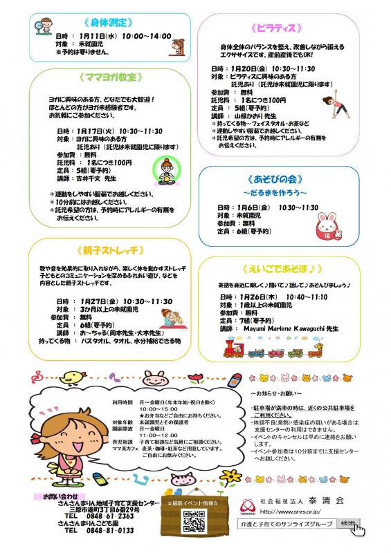 こちらをクリック ⇒ さんさんまりん地域子育て支援センター 1月のご案内【PDF】