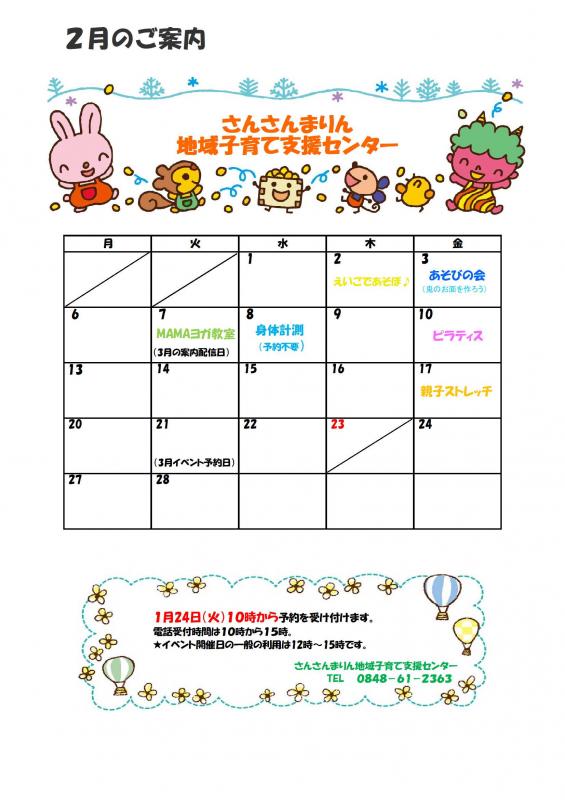 【さんさんまりん地域子育て支援センター】 2月のご案内