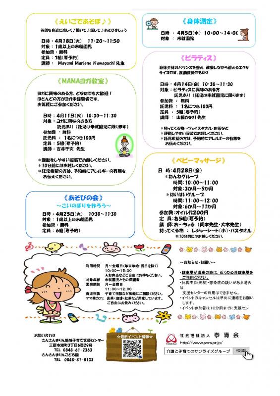 【さんさんまりん地域子育て支援センター】 4月のご案内
