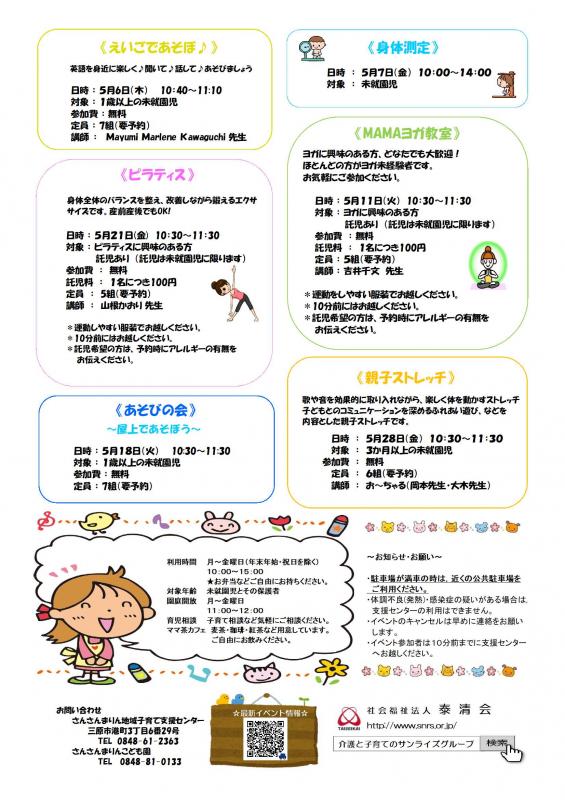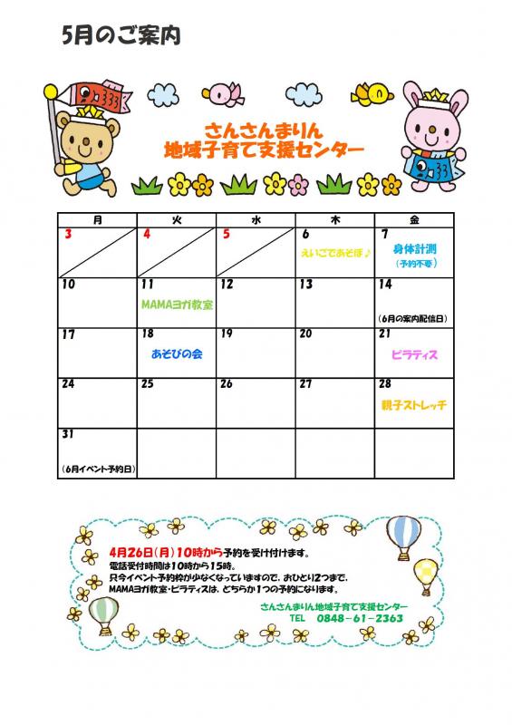 【さんさんまりん地域子育て支援センター】 5月のご案内