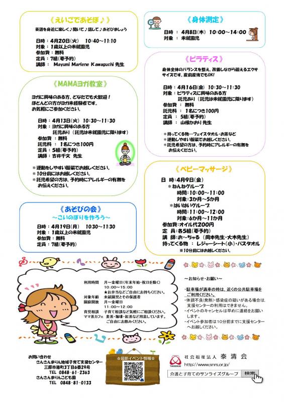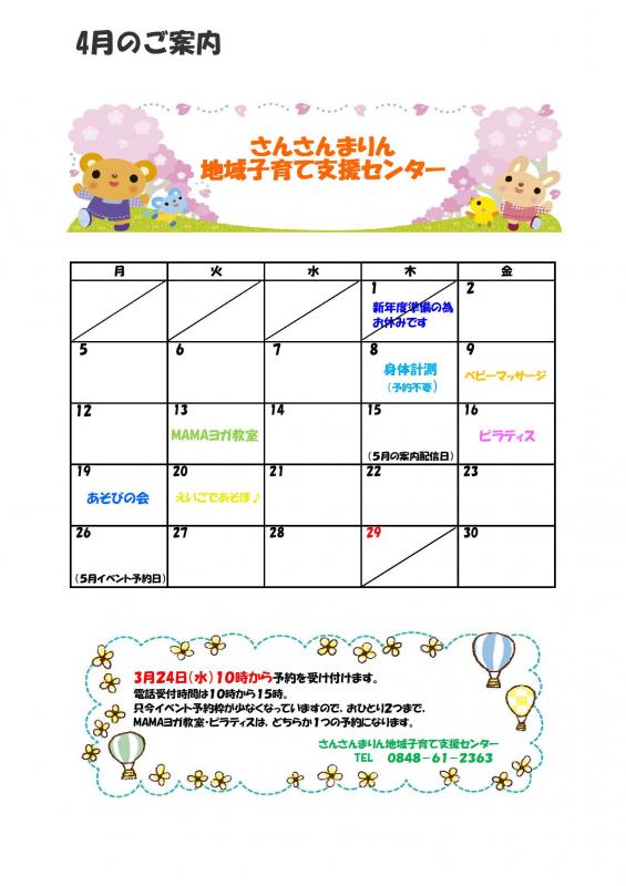 【さんさんまりん地域子育て支援センター】 4月のご案内