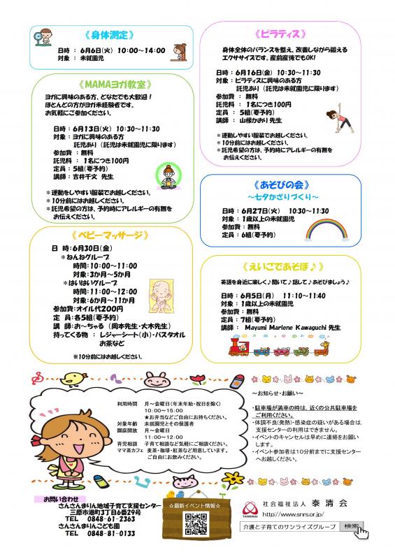 【さんさんまりん地域子育て支援センター】 6月のご案内