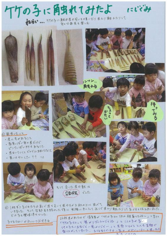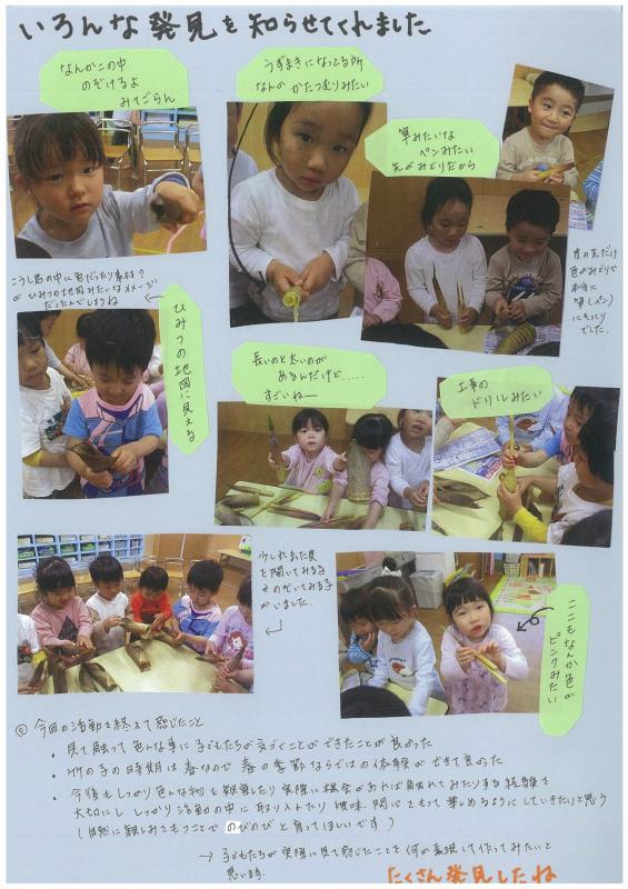 【さんさんまりんこども園】3歳児クラス活動☆たけのこに触れてみたよ