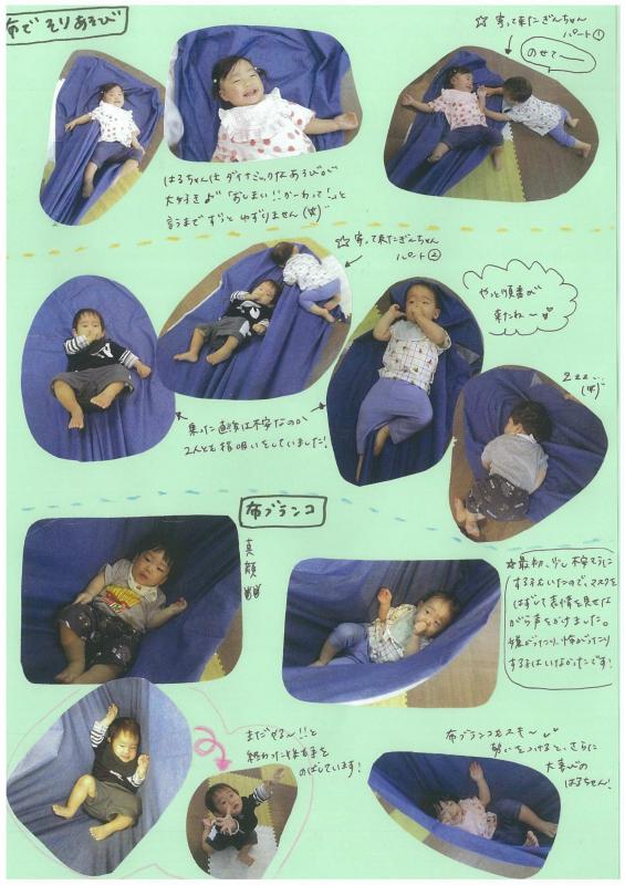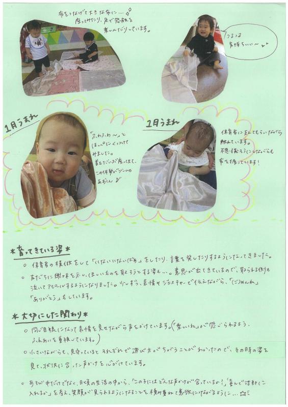 【さんさんまりんこども園】0歳児クラス活動☆布あそび