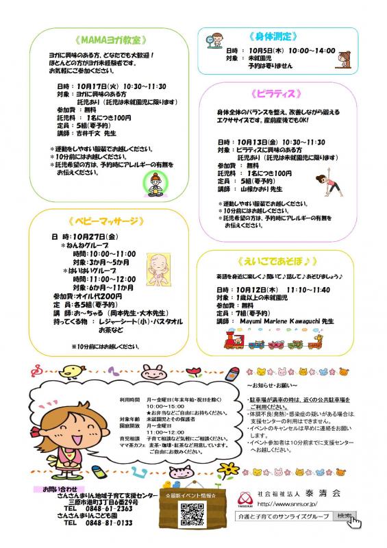 【さんさんまりん地域子育て支援センター】10月イベントのご予約は本日より受付です😊