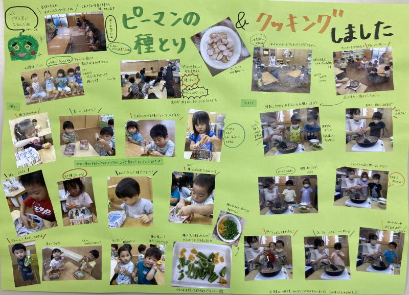 【さんさんまりんこども園】2歳児クラス活動☆ピーマンの種とり&クッキングしました🎵