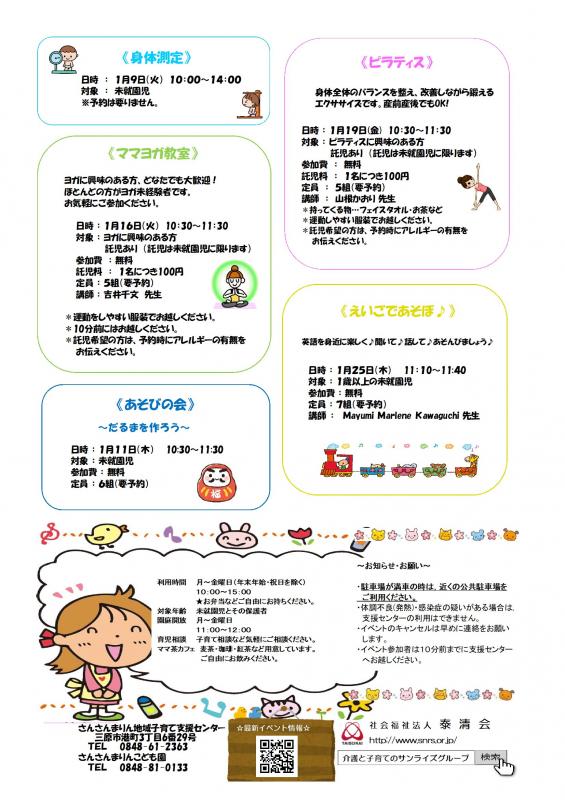 【さんさんまりん地域子育て支援センター】1月イベントのご予約は本日より受付です😊
