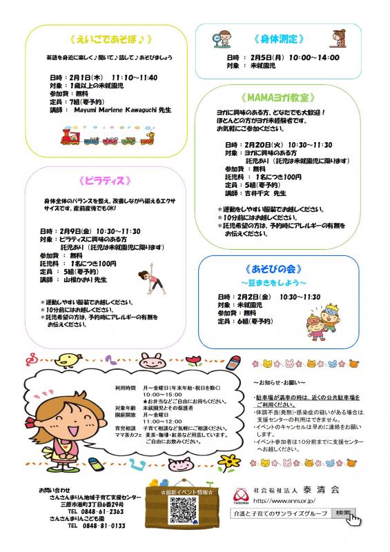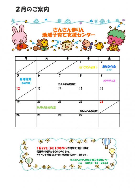 【さんさんまりん地域子育て支援センター】 2月のご案内