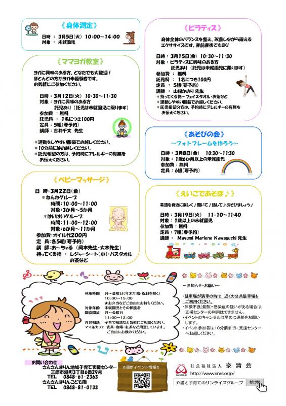 【さんさんまりん地域子育て支援センター】 3月のご案内