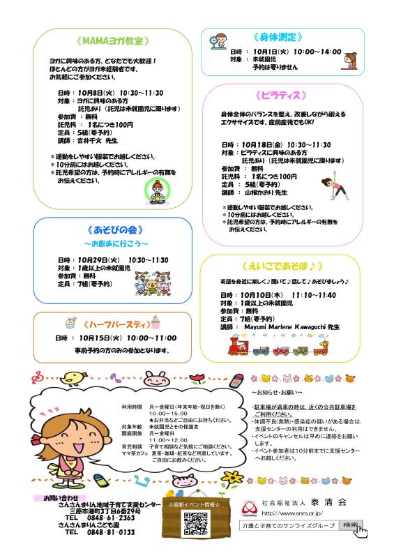 【さんさんまりん地域子育て支援センター】10月のご案内