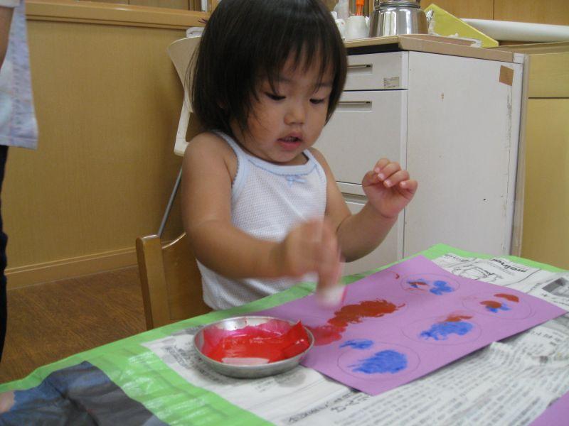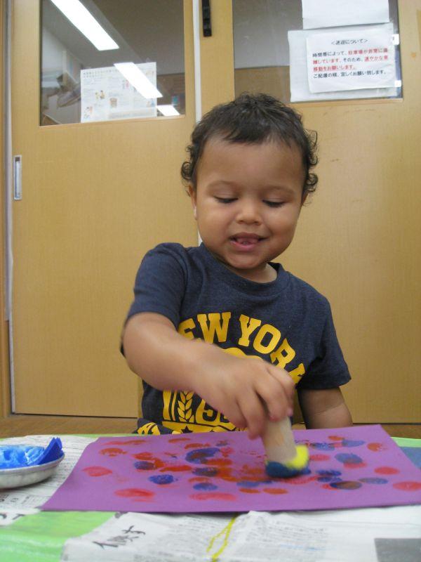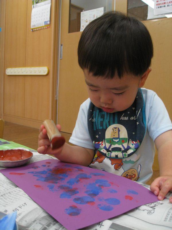 タンポを使ってぽんぽんとたくさんスタンプしていきました。