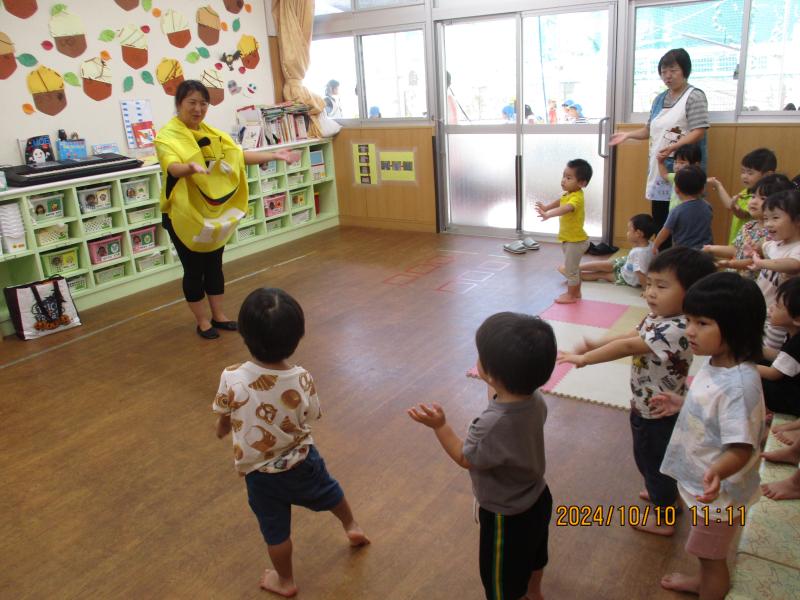 2歳児クラス🎃3歳児クラス🎃4歳児クラス🎃支援センター🎃にてえいご活動行いました💛