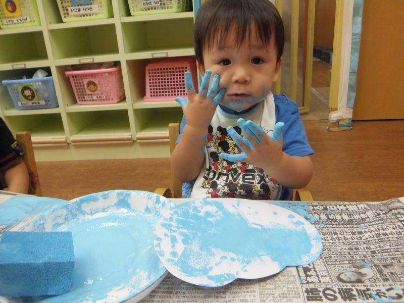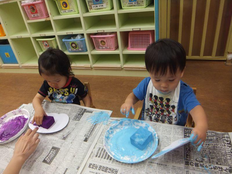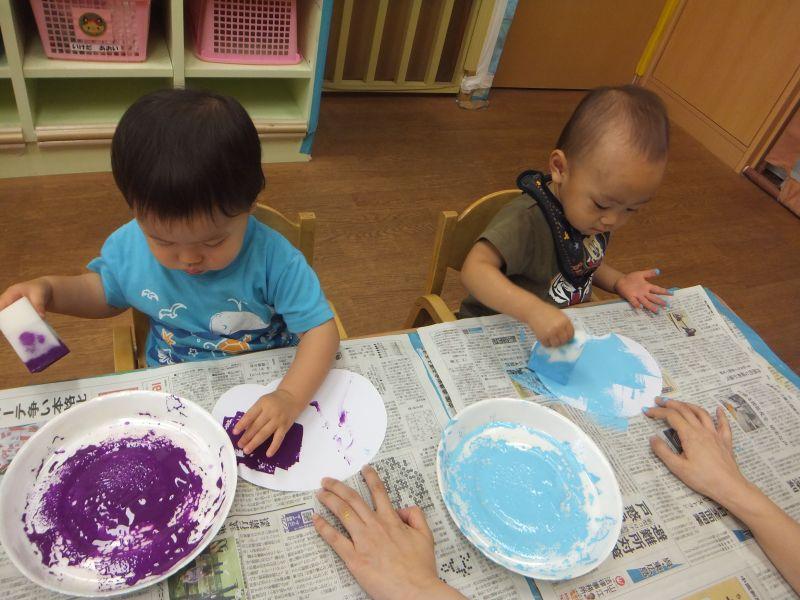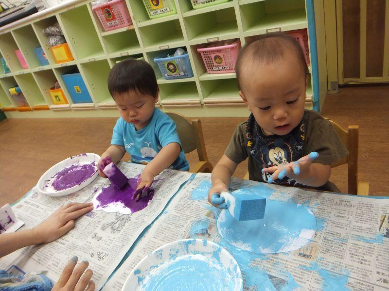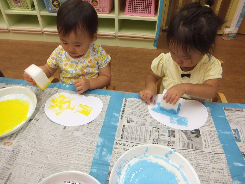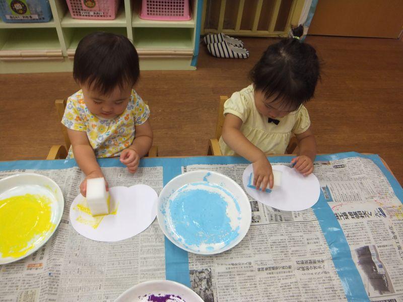 【さんさんまりんこども園】スポンジスタンプをしました☆