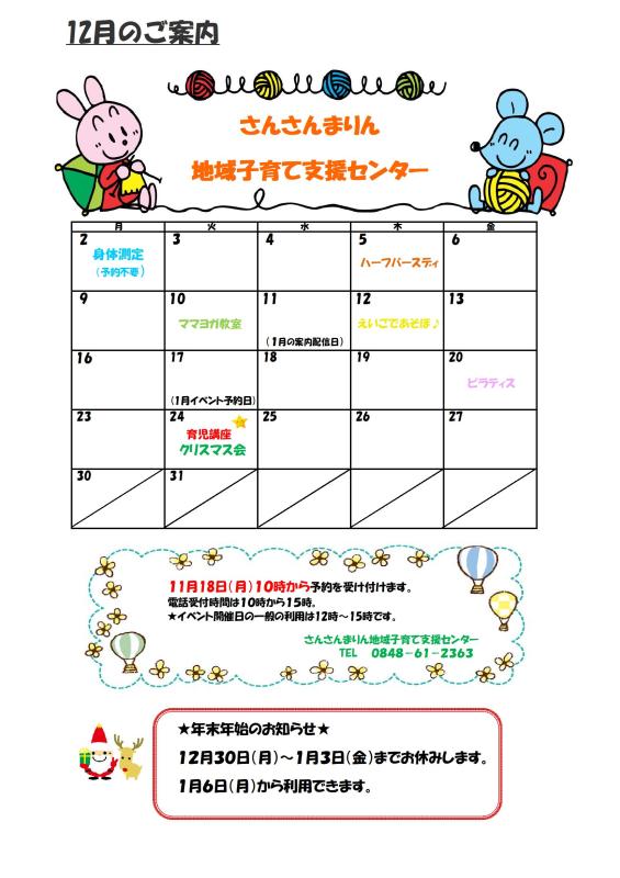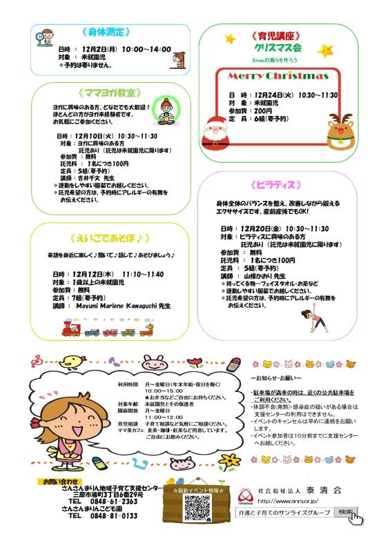 【さんさんまりん地域子育て支援センター】12月のイベントご案内🎄🎅🎄