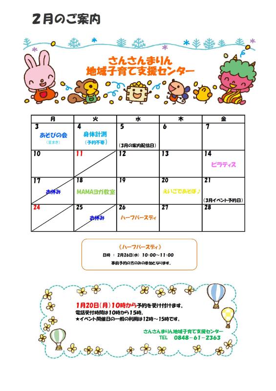 【さんさんまりん地域子育て支援センター】2月のご案内