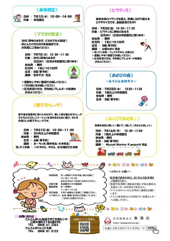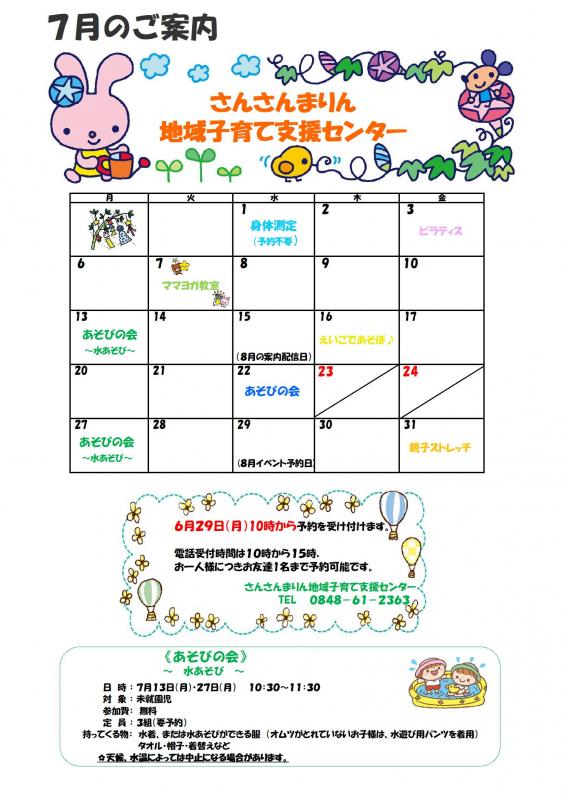 【さんさんまりん地域子育て支援センター】 7月のご案内
